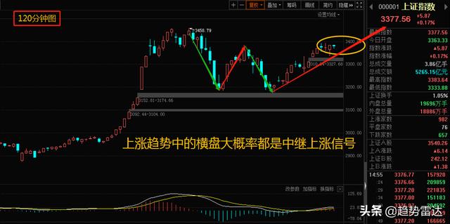 趋势方面的已经讲了很多,今天就不继续展开讨论了,毕竟下方趋势线安全,浪型也还没有确立5浪格局,这里基调就是这么个基调,多说无益!今天主要想跟大家讲讲细节方面的推演,在前文达哥反复强调过,这里量能属于温和放大,而前高附近的套牢盘属于新进资金,时间间隔也不长,所以这里直接打突破的概率比较低,毕竟面临的是短线获利盘和套牢盘的双重抛压。换位思考的话,如果你是主力资金,你是选择花大量资金强攻?还是说利用3400点整数关口做拉锯整理,从而达到分化瓦解空方抛压力量的目的呢?