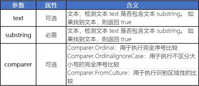 语义:判断文本 text 是否包含文本 substring。返回布尔值。