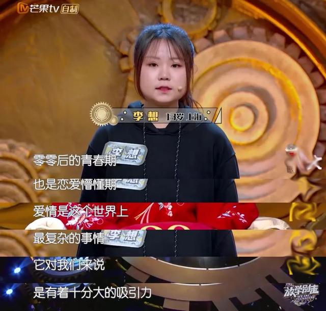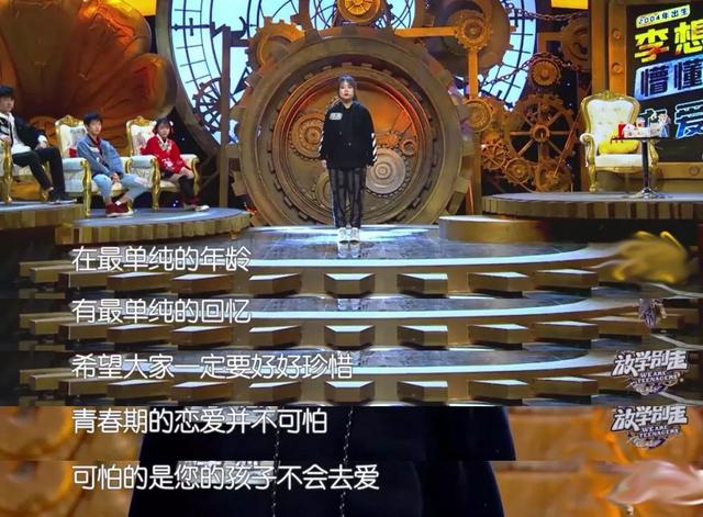 但其实在节目中可以看到,无论是小学五年级的孩子,还是已经17岁的少年,情窦初开时的爱恋,其实就是青春期懵懵懂懂对异性的好感,想表现自己吸引其注意,这精神层面的感觉就是人成长所必需的,犹如身体发育,到了时间就会有了。就是那种感觉,我们每个人都是从那个阶段过来的,你也没法去阻止。