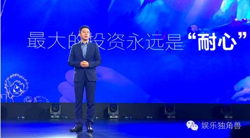 我们的旗下有一个进化娱乐工作室也是在做原创动画电影,之前的发布会,工作室的负责人刘富源一直跟我说,说老板我这还没有特别大的进展,能不能先不发布。我说,先安心打磨作品,什么时候可以说了再发布不迟,我们作为一家影业公司,最舍得投入的就是耐心了。今天,很高兴,他一会儿的环节你们会见到刘富源,他总算愿意带着作品,来跟大家汇报一下项目的进展。