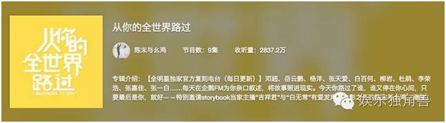 (《从你的全世界路过》官方电台在企鹅FM播放量接近3000万)