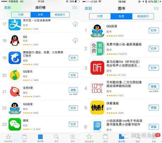 10月1日下午,QQ阅读官方发出“携手《爵迹》团队登陆《快乐大本营》”的活动预告后,明星粉丝团迅速转发扩散,以爆炸式的传播速度在粉丝圈里掀起了一阵热议,微博话题#最有料的快本#上线12小时阅读量迅速达到近600万。据透露,节目播出的90分钟内QQ阅读在APP STORE图书分类榜中排名第一,在免费榜中排名超过微信,位居第22位。如此短的时间QQ阅读就能获得数百万下载量,着实令人惊艳。
