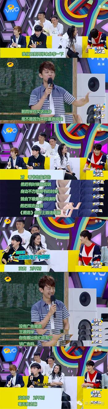 而何老师更是卖力宣传,多次提到QQ阅读,还特别强调了“90%以上的影视剧原著都可以在QQ阅读上找到”,引发众星合力吆喝。而当何老师问王源“你有看出我们在讲广告吗”时,一句“毫无痕迹”更是将现场的气氛推向了高潮。轻松幽默的破梗,巧妙地拉近了品牌与消费者之间的距离,也为QQ阅读带来了意想不到的传播效果。