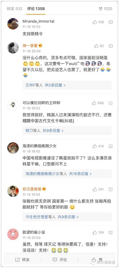 限韩令的风口下,已经播出两集的电视剧突然通知明年播出,怎样的解释都躲避不了被这场“限韩风波”联系到一起。有网友表示:还买什么版权,等你买完我们都看完了。