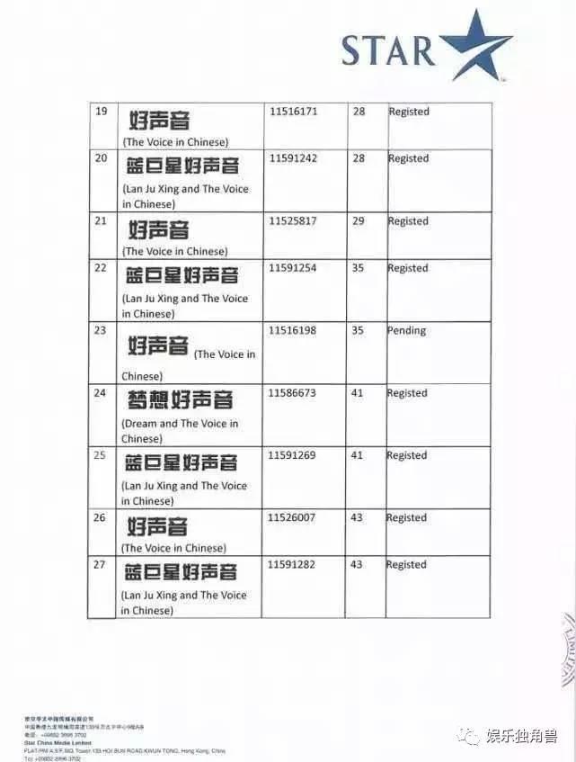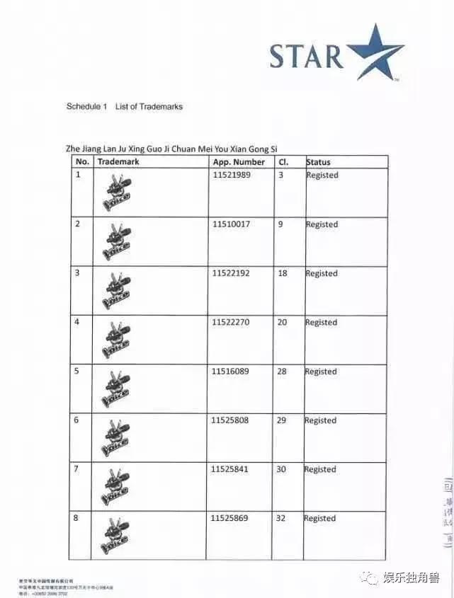 据了解,在灿星公司与荷兰Talpa公司关于《中国好声音》的授权终止以后,灿星公司在荷兰Talpa公司起诉并申请其注册的商标无效后已经将自己非法注册的商标归还给了荷兰Talpa公司,但一度答应归还商标的蓝巨星国际传媒公司却没有履行自己的对荷兰Talpa公司的承诺,因此荷兰Talpa公司不得不于2016年3月8日向国家工商行政管理总局商标评审委员会提起的申请,申请商评委对蓝巨星国际传媒公司非法注册的有关“……好声音”的商标都做出无效宣告。