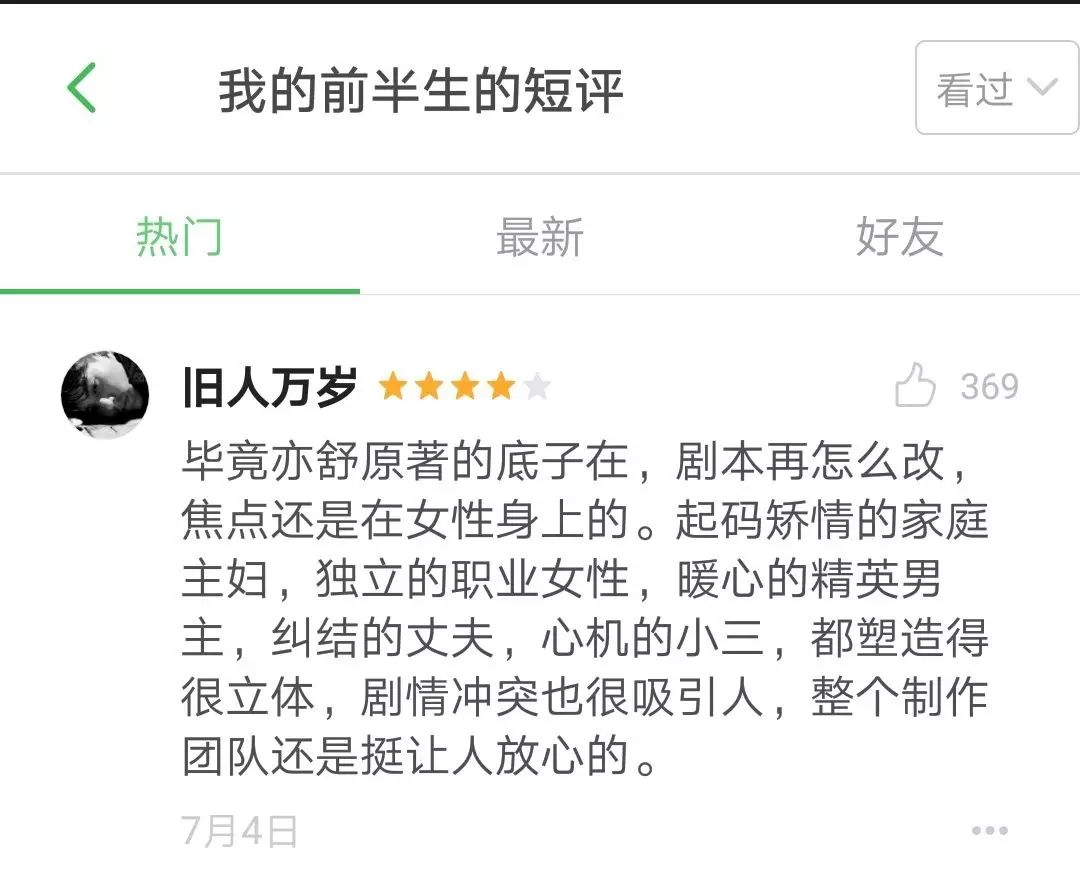 整体来讲,观众对该剧仍保持了较高的评价,但是至于之后是否会落入网友“细思极恐”的俗套剧情“三角恋”尚不可知。根据目前的剧透情况怕是不可避免,媒体报道的马伊琍相关采访中就曾透露“男女主角必须要有情感纠葛”。