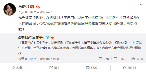 事情迅速发酵,今日(7月6日)凌晨,剧方发表道歉声明,对剧中不当台词表示诚挚道歉并做处理修改;扮演者马伊琍随后也发表声明表示“今后会对所饰演角色的台词把控和细节表达更加严谨”,对此网友也各执一词态度不一。但是截止晚发稿前,该剧在爱奇艺上的剧集仍未对相关部分做出调整。