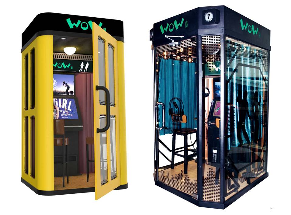 和传统KTV不同,大多出现在人流量相对集中场所的迷你KTV,只有不到2平方米的占地面积。一台点唱设备、两个高脚凳被隔音玻璃所环绕,收费方式有按曲付费和按时付费两种选择,完整的KTV点歌系统,唱歌、听歌、录歌一气呵成,最后还能通过多种社交软件分享出去。2016年底,雷石推出了WOW屋,成为迷你KTV领域新入场的大玩家。