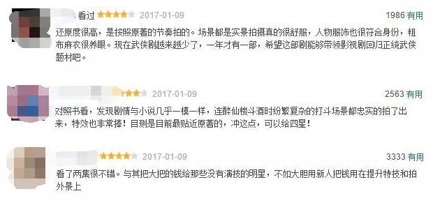 显然,主创团队的心血并没有白费,查阅豆瓣不难发现,“最贴近原著的一版”、“为认真的翻拍鼓掌”等点赞改编的评论占据了大多数,各主流媒体也发文对《新射雕》还原原著表示了称赞。