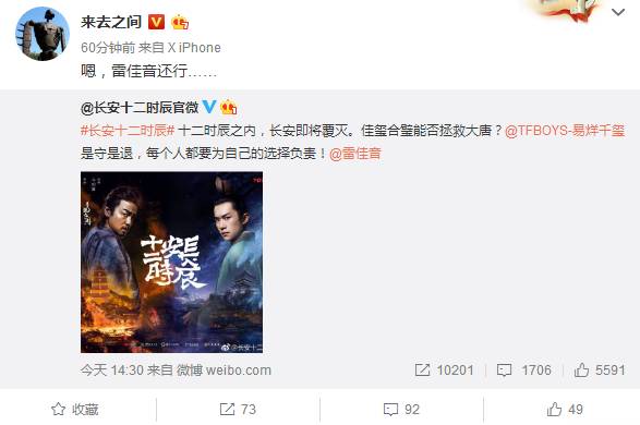 微影时代的大数据能力帮助《长安十二时辰》更好地发挥内容优势、精准定位受众、在大数据基础上快速洞见市场变化,由此拓展《长安十二时辰》的剧集生命力。联合出品方留白影视则将IP系列开发能力优势引入《长安十二时辰》,深度挖掘IP价值。作为生态型平台,优酷将为《长安十二时辰》输出强大平台支持。