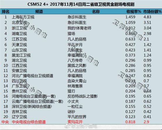 由著名导演郑晓龙、导演刘雪松执导,王珞丹、张嘉译、江珊领衔主演的都市医疗剧《急诊科医生》自10月30日在北京和东方两大卫视开播以来,迅速在收视排行榜上取得领先位置。在同期大剧《猎场》、《碧海雄心》冲击下,依然高居CSM52收视榜前两名。