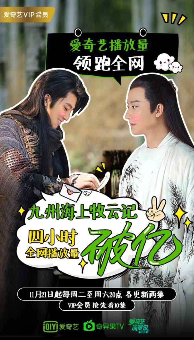 备受市场瞩目的东方魔幻史诗巨制《九州·海上牧云记》终于11月21日全网首播,豆瓣评分高达8.2。该剧全网播放量4小时破亿,其中爱奇艺贡献最大,流量达四成,领先行业。