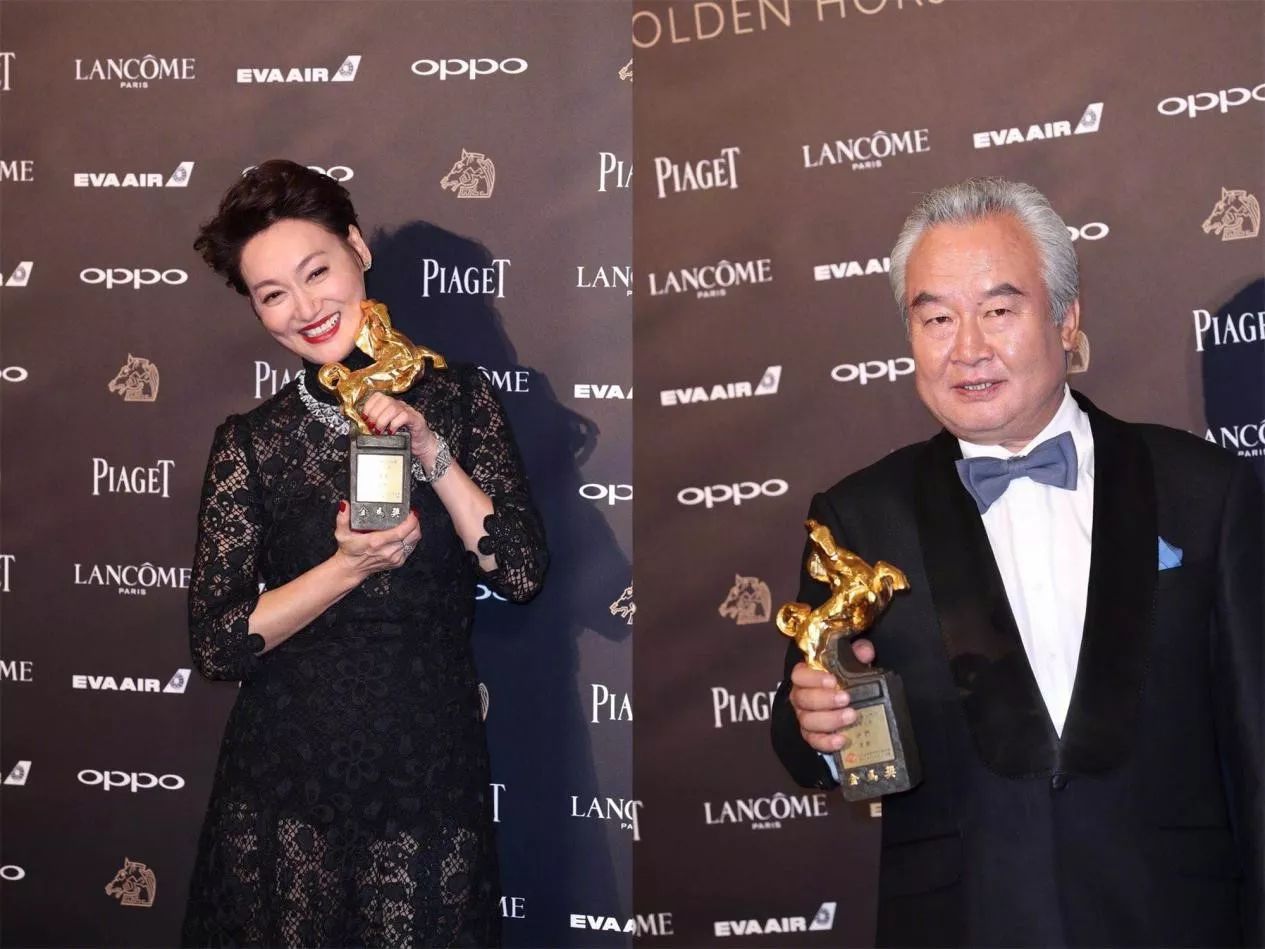 ▲最佳女主角惠英红(《血观音》)和最佳男主角涂们(《老兽》)