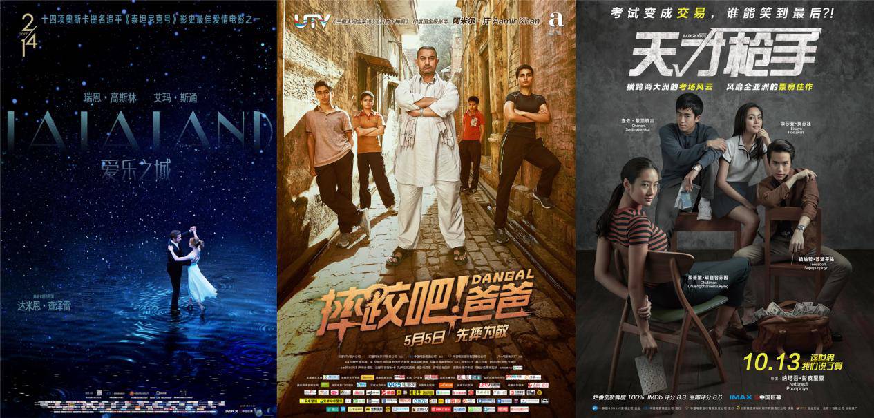 上半年《摔跤吧!爸爸》在和《银河护卫队2》的正面竞争下,由起初的不占优势,到后期越战越勇,超过12亿的票房也成为中国电影票房最高的批片;《爱乐之城》依靠奥斯卡的热度和在上映前社交平台营造的口碑和宣传力度,让并非是中国市场青睐的歌舞片最终拿到2.48亿票房;《天才枪手》作为后国庆档上映的泰国批片,同样在上映前就凭借在海外收获的高口碑和评价,从社交平台入手将话题和口碑蔓延开来,最终收获2.7亿票房。