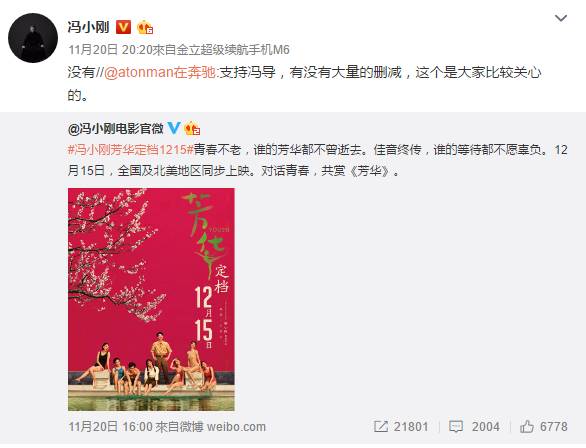 此前在宣布定档9月30日后,《芳华》就曾选择在北京大学进行影片的首站路演,并在百年讲堂首次公开放映了全片,136分钟的时长与冯小刚之前公布的片长一致,与多伦多电影节版本相比少10分钟,是因为冯小刚找了一些朋友看片过后提出了剪辑意见,他汇总修改之后,定下了最终的公映版本。