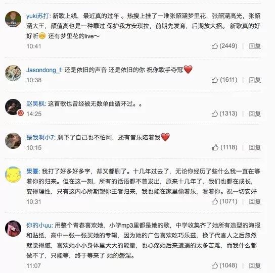 今日,张韶涵在网易云音乐上线了为电视剧演唱的《剩下了自己》单曲,评论已经突破4000条,评论里一片回忆的气息。