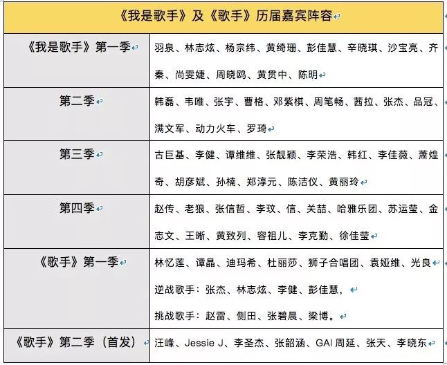 每一季《我是歌手》及《歌手》的平台,不仅能够让一些销匿多年的资深歌手“回春”,也能够让中国乃至海外市场输送新鲜血液,尽管不以咖位来评判的话,