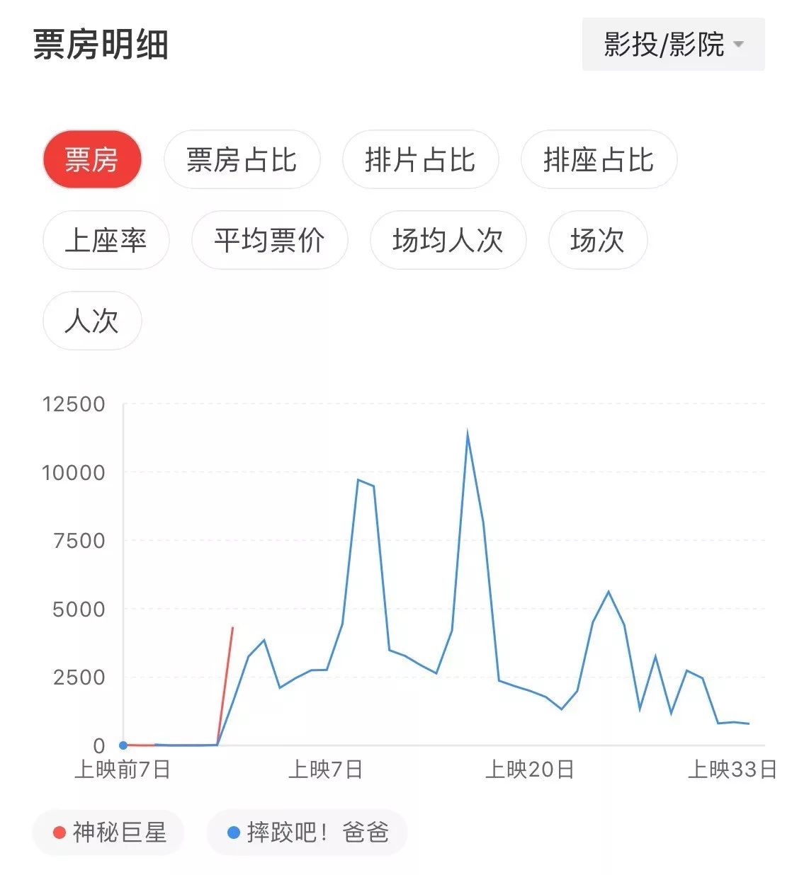 《神秘巨星》昨日和其余四部新片同天上映,《英雄本色2018》、《奇迹男孩》、《公牛历险记》和《谜巢》,排片占比位列首位,以19%的排片拿到25.3%的全天综合票房,4330万在五部新片里也排在第一;次日排片上升到21.7%,仍旧排在所有影片的首位,虽然票房被《无问西东》紧咬,上座率也不如后者,但凭借过硬的质量和口碑,《神秘巨星》还是在单日票房上稳稳守住着冠军宝座。
