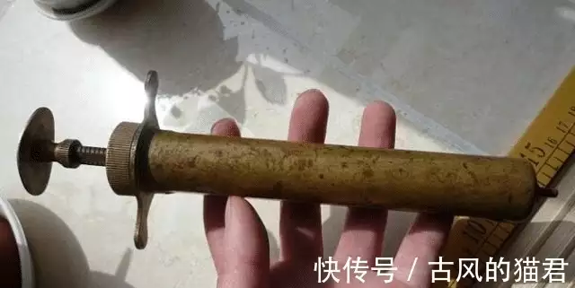 老式兽用金属大型注射器,是不可缺少的兽用器械之一,晕针的人一般看不了这个,因为针头很大。