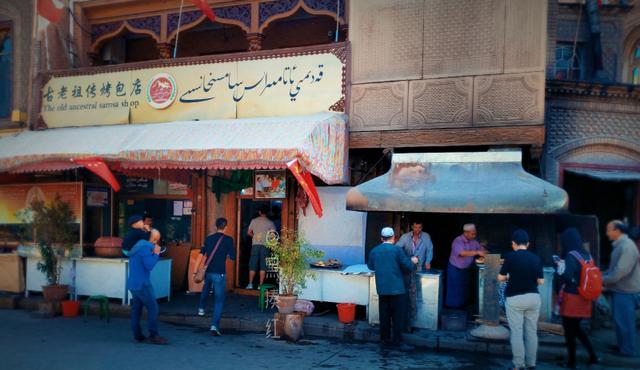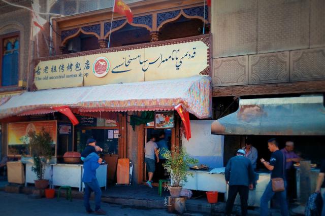 这家店名也不是很起眼:古老祖传烤包店。在喀什这个地方,人们取店名都跟闹玩儿似的。