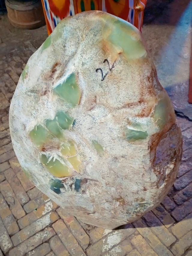 喀什隔壁的城市就是著名的和田玉产地,倒腾玉石的商人会把一块巨大原石的“皮”扒开一部分,露出若隐若现的一些精华,至于这块石头最终会“扒”出一块大玉还是一些碎玉,就纯看购买者的运气了。