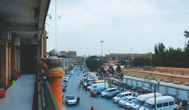 客栈对面就是艾提尕尔清真寺,这个清真寺非常大,且著名,在全新疆的清真寺中,它的综合实力名列前茅。寺院的四周都种植着高大的树木,即便站在楼上眺望,也看不到内部的情景,但是后来听人说,外面这一排不太起眼的带有圆顶子的白色小屋,是卖殡葬用品的,就是类似于一个殡仪馆那样的地方。