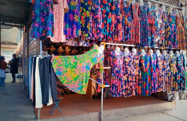 大巴扎的外围一圈是开放式的商户,有很多家小饭馆儿,卖着喀什的特色美食。再有就是数间服装店,卖着维吾尔族的艳丽裙装。