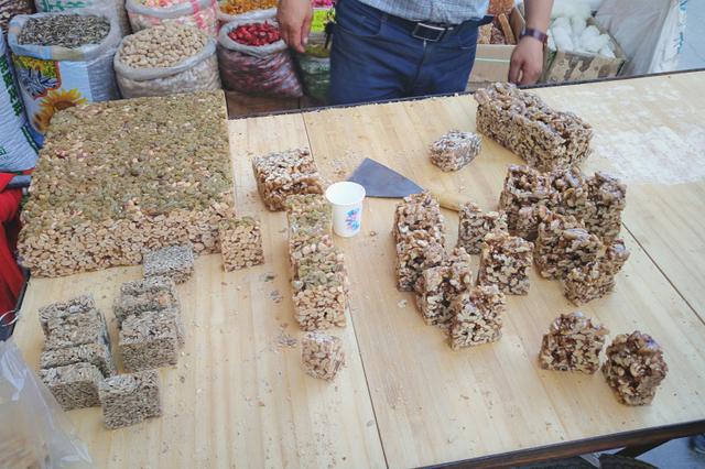 喀什大巴扎上售卖的切糕并不贵,这一小块儿5块钱。