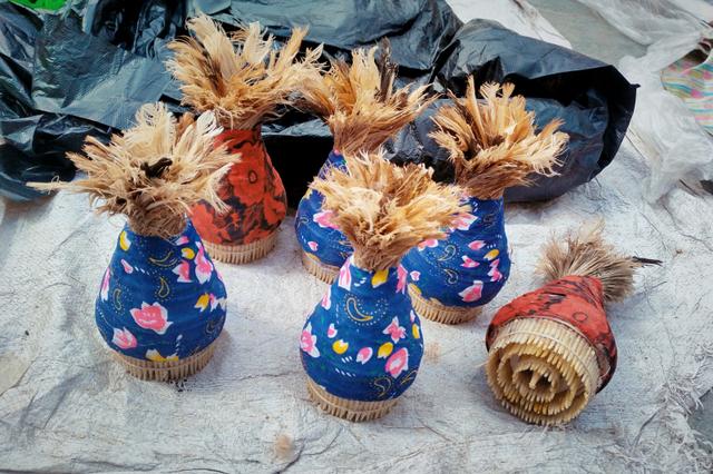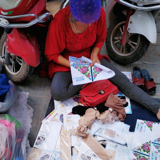 摆地摊的女人们会把自己平日里手工缝制的布艺饰品带出来卖。它们可以用做靠垫、桌围,以及家居软装可以用到的一切地方。