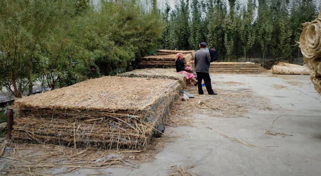 在乌帕尔巴扎后面比较空旷的场地上,我看到有卖草席的人家。
