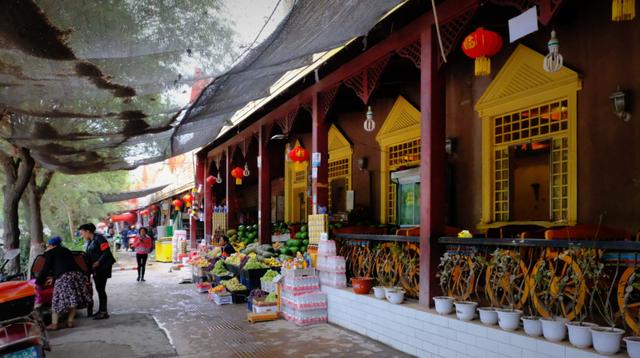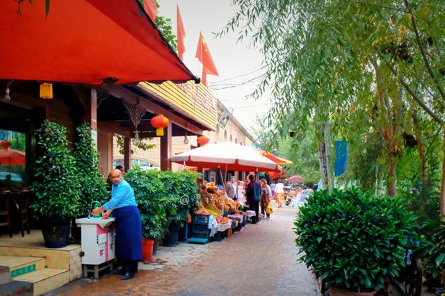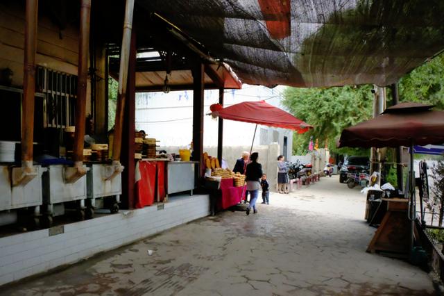 路边的饭馆装修华丽,小卖店里琳琅满目,人们在自家门前撑起摊子,传统的烤羊肉包子被做成别致的形状,炊烟袅袅。
