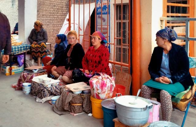 就连平时很少出门的维吾尔族女人们都会穿戴整齐,出来摆起小摊子。