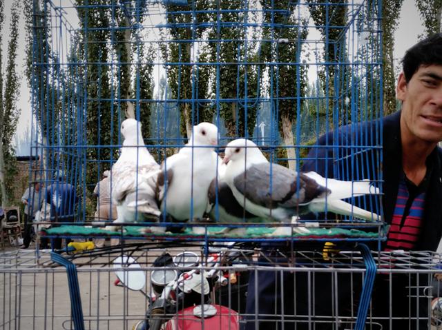 对于我这种走马观花的游客来说,它们就是普通的鸟,但是对于玩鸽子的喀什人来说,他们可以轻松地辨识出哪一只是优质的信鸽。
