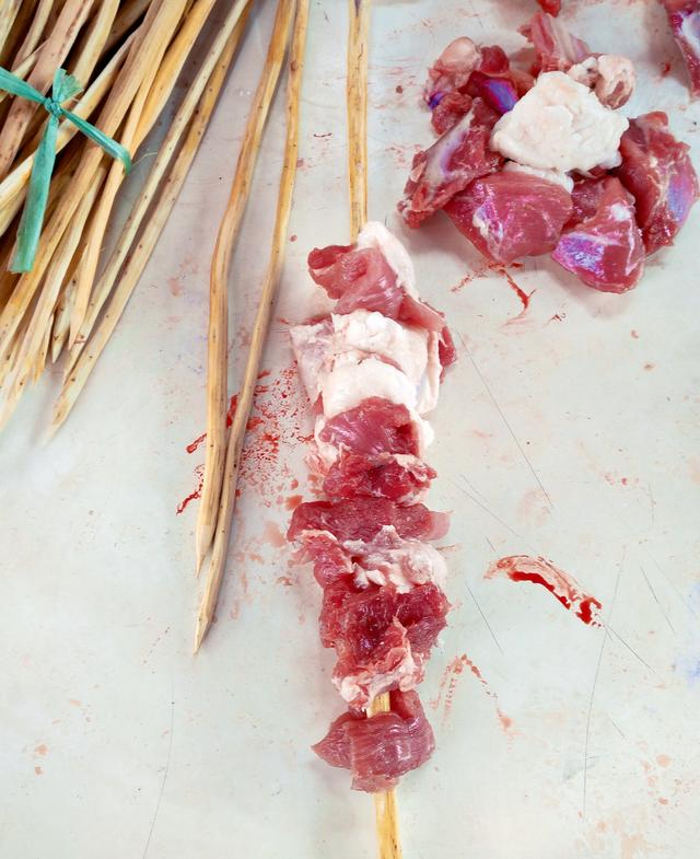 这就要求羊肉的肉质紧密,不能掺假,否则是串不成串儿的,所以红柳烤肉是当地人心目中默认的“货真价实”的烤肉,价格也比其他的普通烤肉串要高出很多。