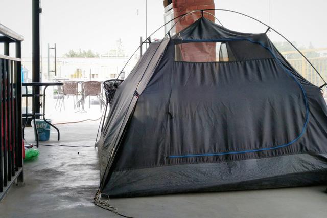 天台的一侧是帐篷区——为了节省住宿费用,有一些骑摩托车的“苦行者”们会在这里临时扎营,晚上就睡在天台上;