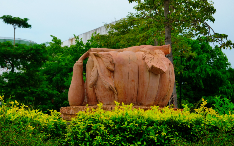 转回身,就是这小广场上的著名雕塑:石南瓜。这大概是云浮市最具标志意义的雕塑之一。