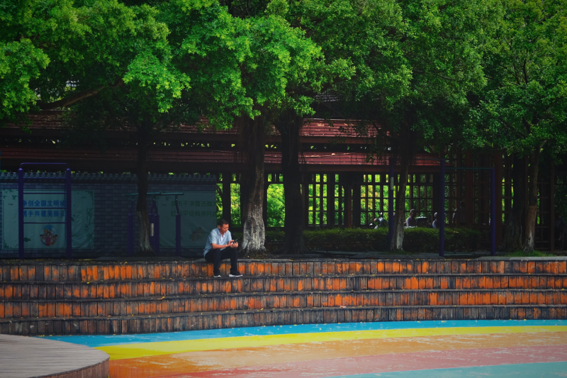 我去的那几天,云浮一直在下雨,淅淅沥沥,大树就像伞,他们就在这伞下坐着聊天。也不躲雨,悠然自得。