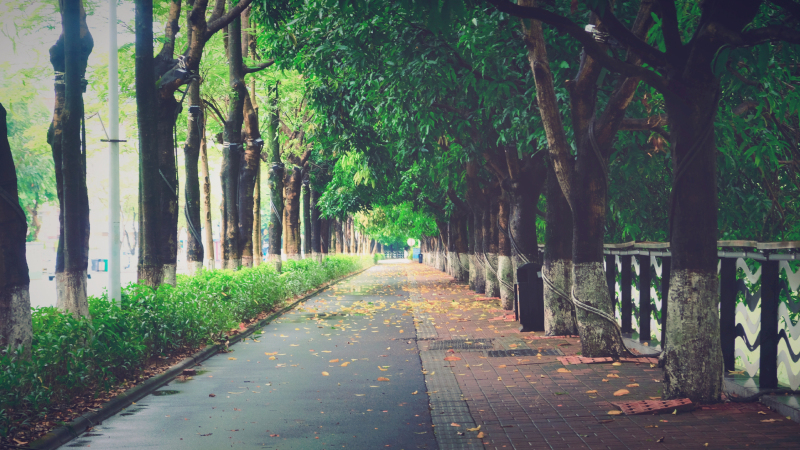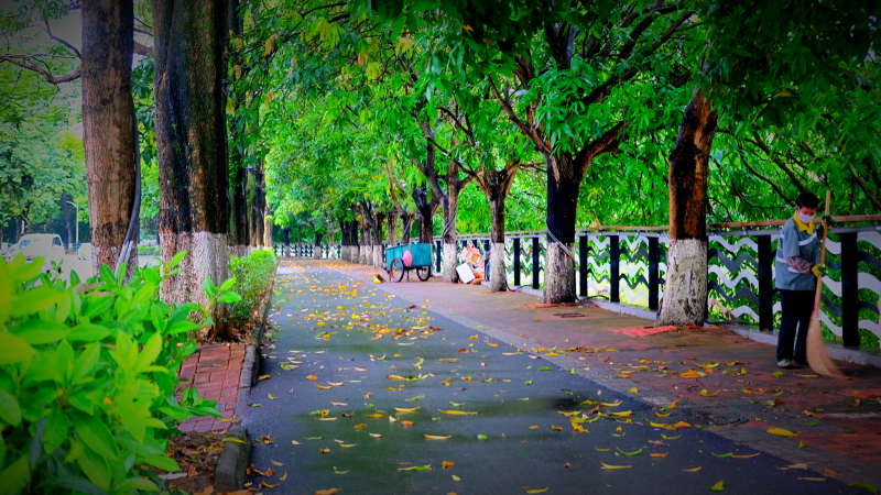 云浮植被非常繁茂,在这里,环卫工人是非常忙碌的一群人,一年四季,他们有着扫不完的落叶。