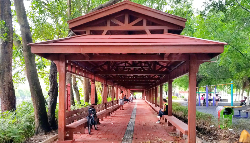 河边有条百米长廊,看到有老人在这里弹琴,骑行的年轻人偶尔驻足,看看书。