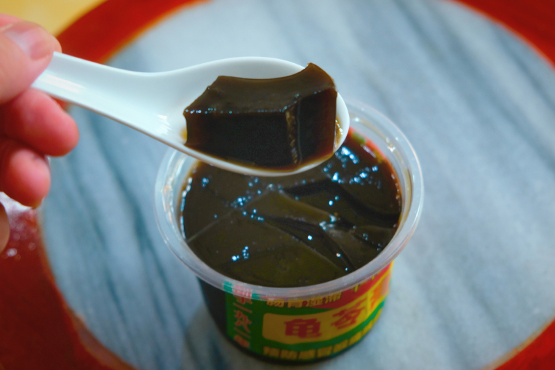 小心翼翼喝了一口,还好,是甜的,龟苓膏也是甜丝丝的。