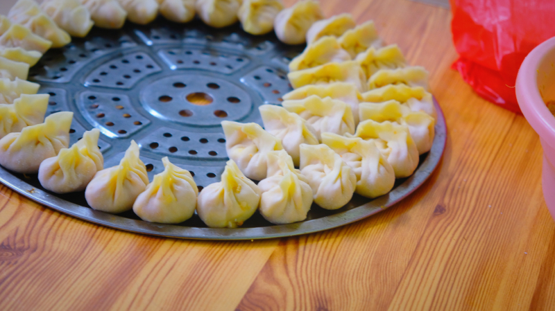 饺子是纯手工的。我一边啃鸡爪子,一边看店里的人包饺子,一圈一圈直到摆满。