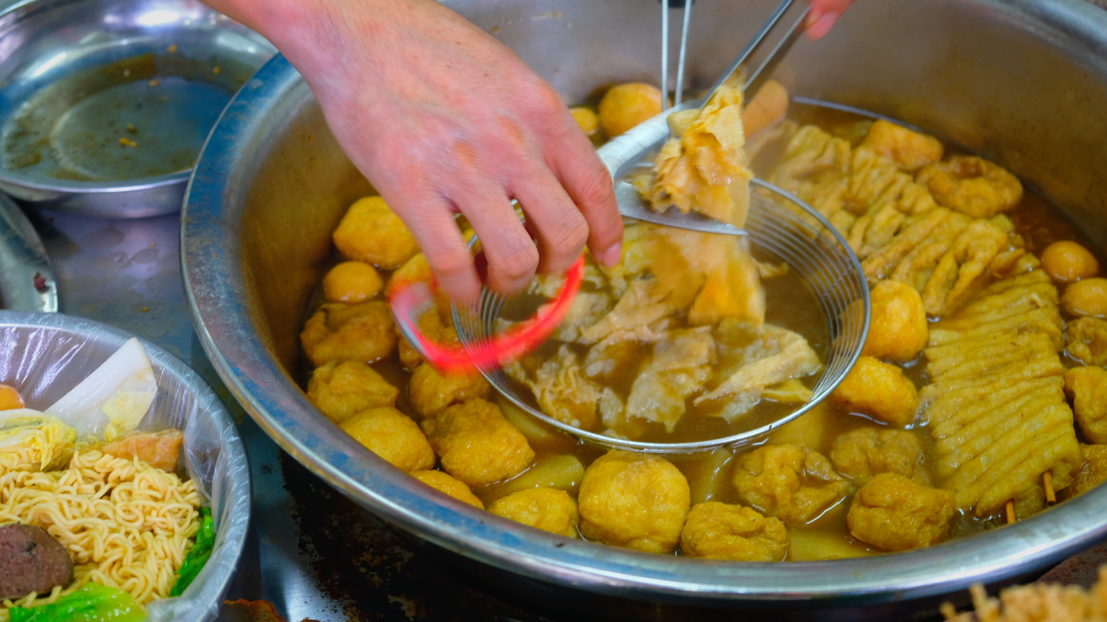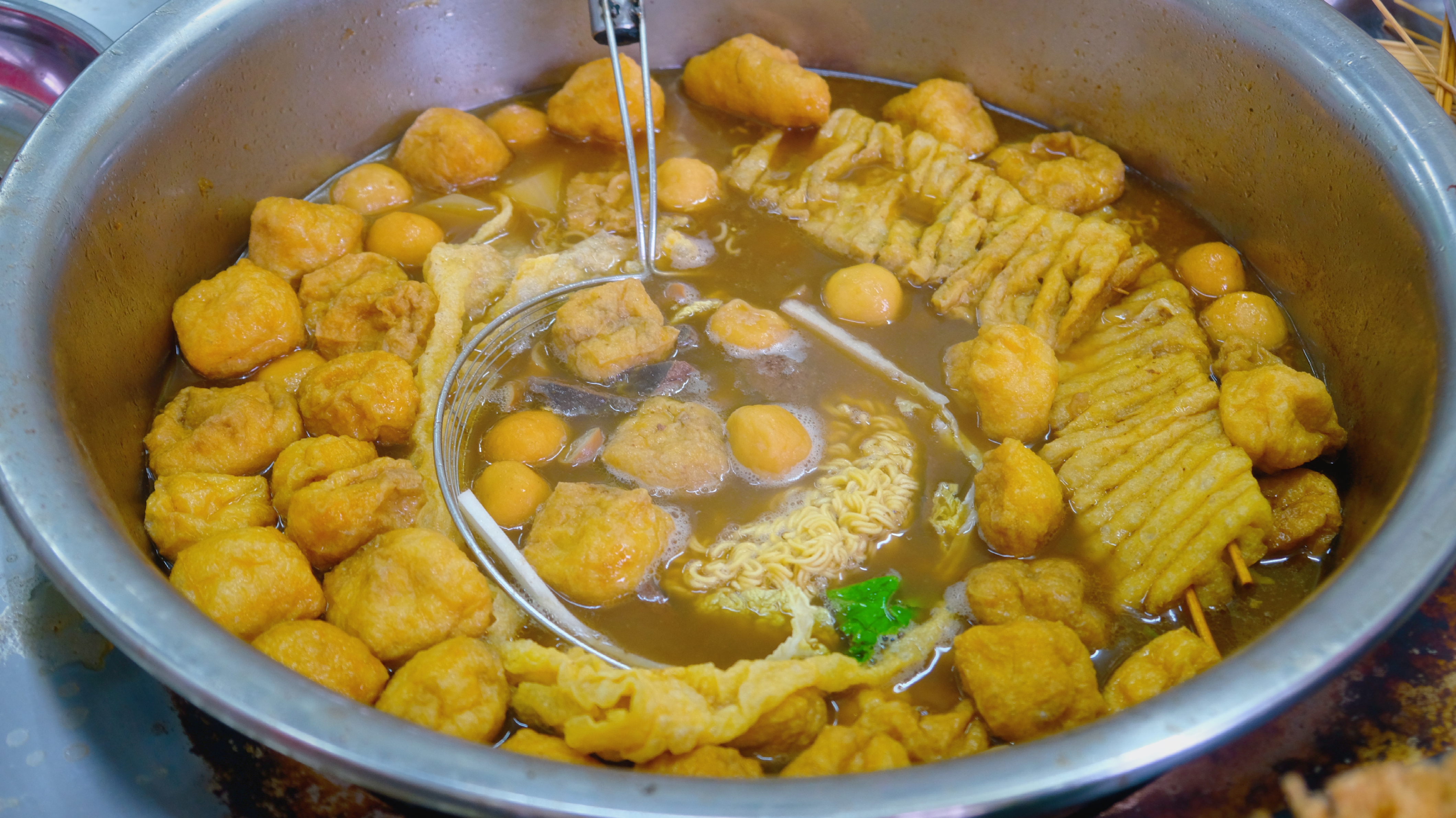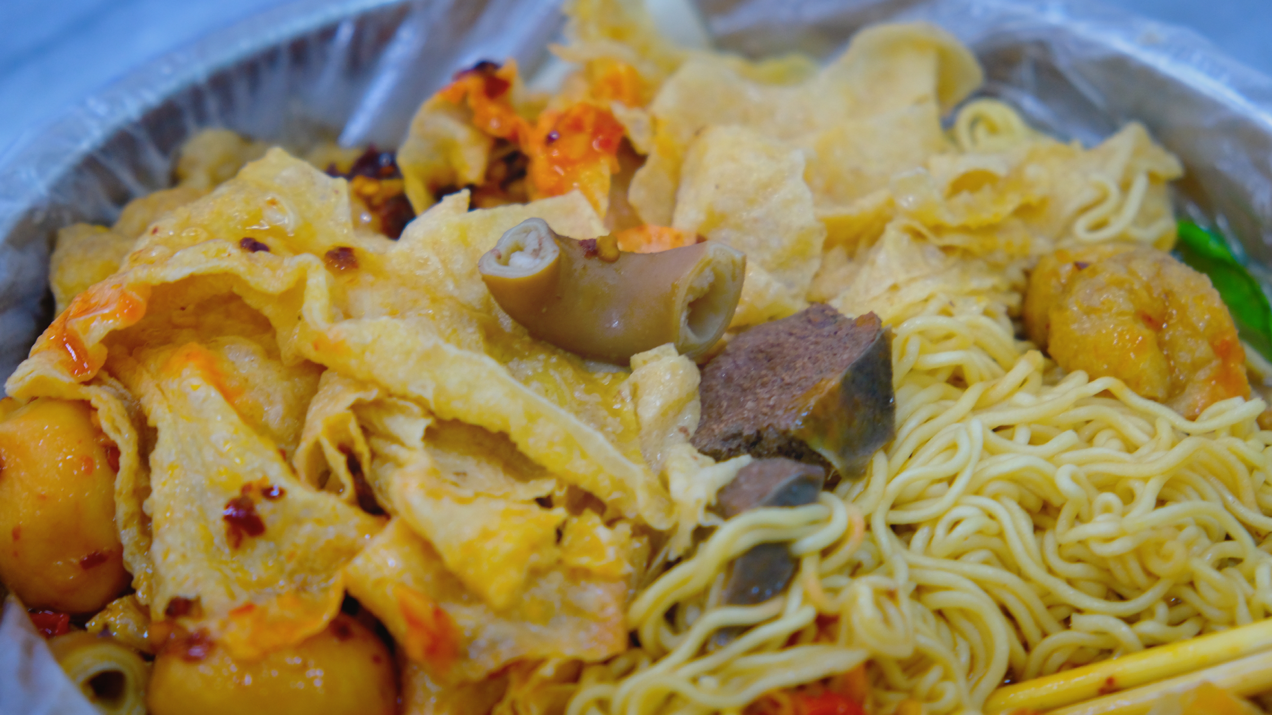虽然店名叫牛杂,但菜码还是很丰富的,老板见我实在表达不出要吃什么,于是手法娴熟、动作很麻利地给我配了这一碗“麻辣烫”。