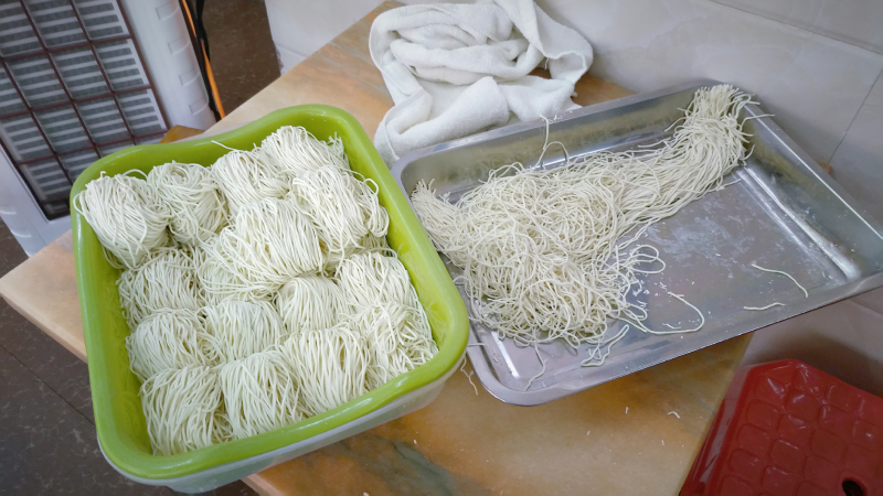 当天店内可以吃到的所有小吃,馄饨皮、馅料、配料,包括切面都是“第一时间”做出来的。