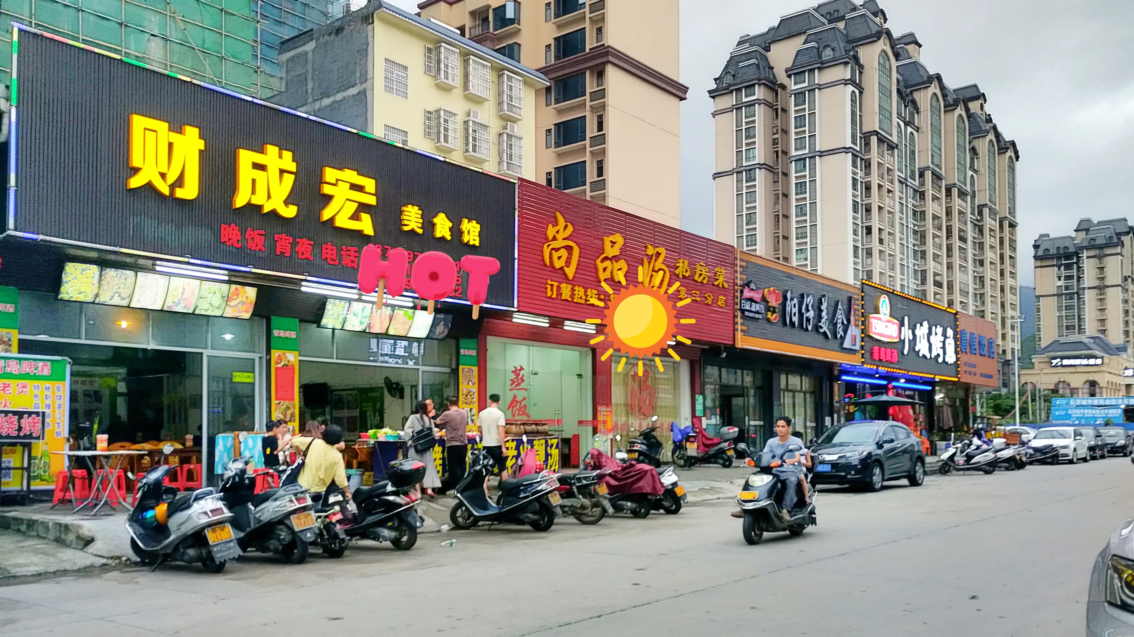 下了车,站在路边一看,果然,路两侧排满了各类饭馆。