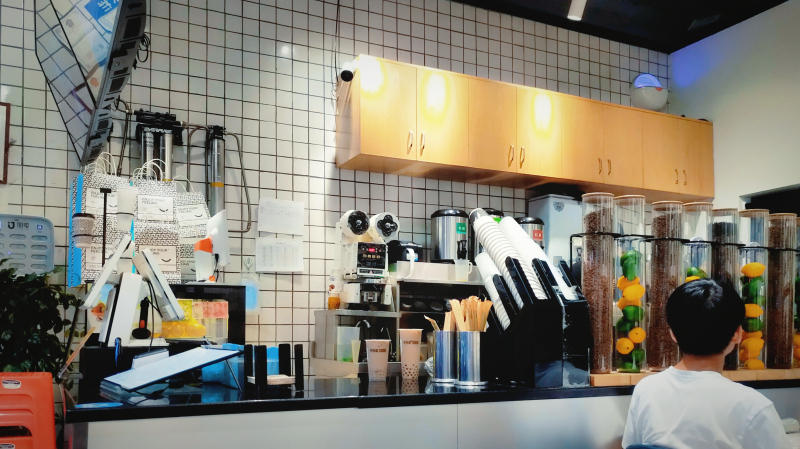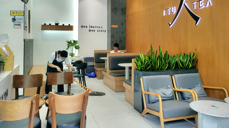 店员小姐姐一直在擦地,直到我的这一杯龙眼茶打包完毕,她的拖把就没停下来过。
