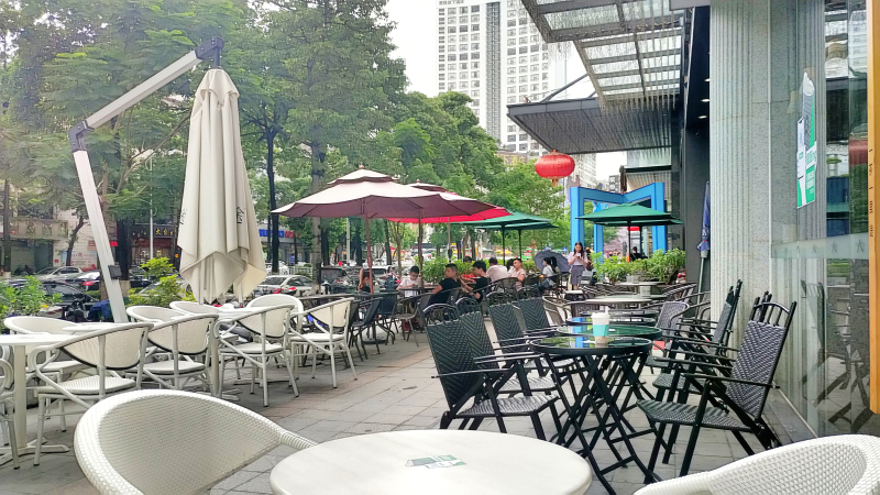 如果一定要坐下来的话,倒不如坐在门口的椅子上,车来车往,还显得宽阔整洁些。