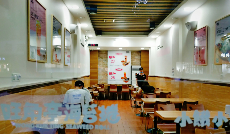 外面是收银台和操作间,里面一间是可堂食的餐厅。餐厅坐了很多人,大部分都是学生的样子,还有妈妈带着孩子一起。