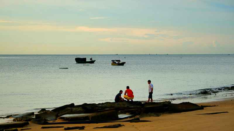 在地图上,这片海域叫做北部湾。“湾”的那一边,是另外一个国家:越南。