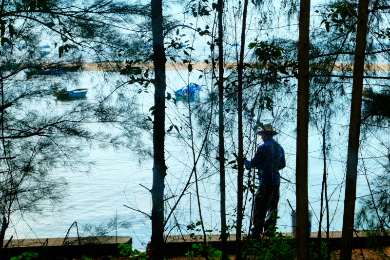 穿过树林去海边站了好一会儿,看渔船静静地停在不远处,静得甚至有些不真实,人会“晃神”,魂会飞出去很远……
