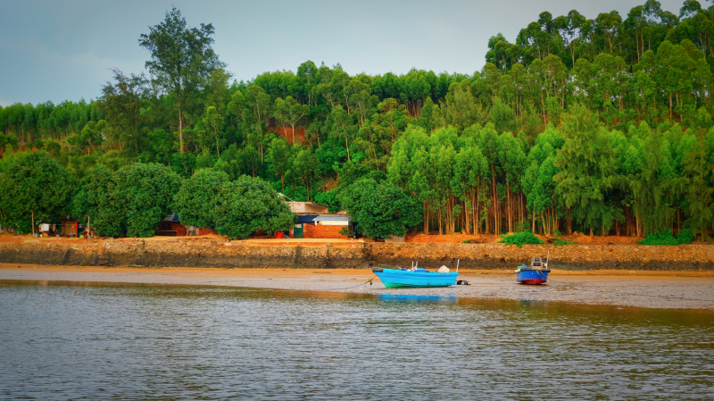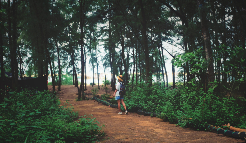 进入村子之后,很长的一段路两侧都是高耸的乔木林子。林子很浅,缝隙很大,影影绰绰中,海面和海滩清晰可见。
